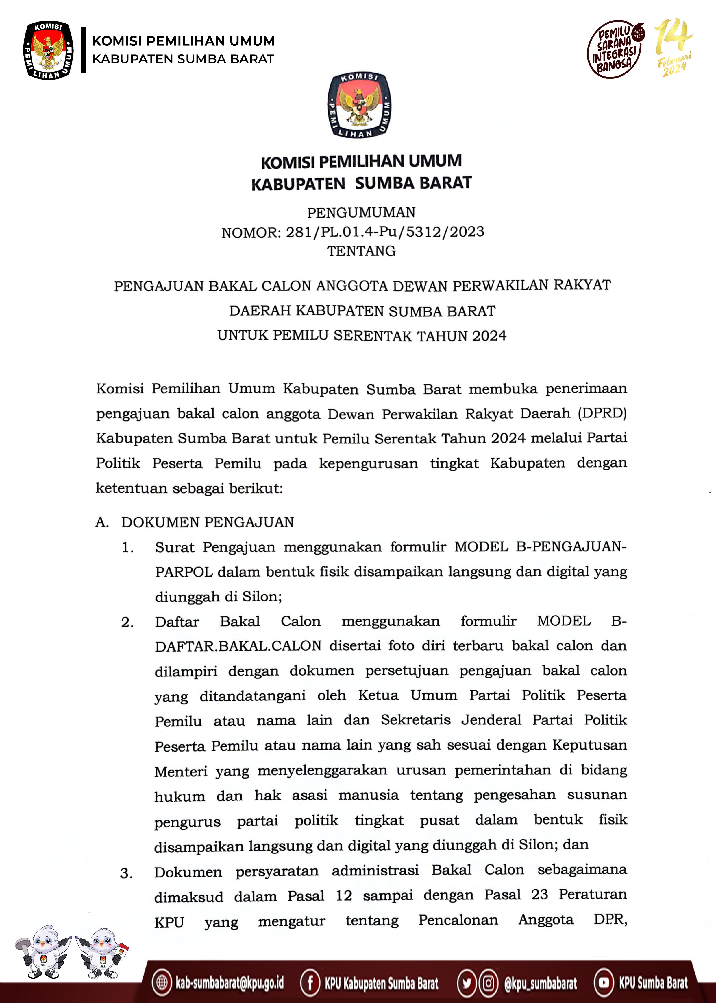 Sejalan dengan salah satu prinsip penyelenggaraan PDPB yaitu inklusif yang bermakna mengikutsertakan kementerian, Lembaga, pemerintah daerah, dan pihak-pihak terkait lain yang membantu penyelenggaraan PDPB, KPU Kabupaten Sumba Barat sangat mengharapkan dukungan dari berbagai pihak dalam pelaksanaan PDPB. agar Daftar Pemilih yang Komprehensif, Akurat, dan Mutakhir dapat terwujud.