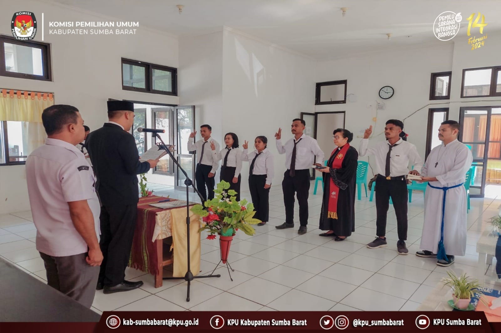 Turut Hadir Anggota KPU Kabupaten Sumba Barat, Sekretaris KPU Kabupaten Sumba Barat, Sekretaris Bawaslu Kabupaten Sumba Barat, Ketua PPK Kecamatan Kota Waikabubak, Tana Righu, Wanukaka dan Rohaniawan.