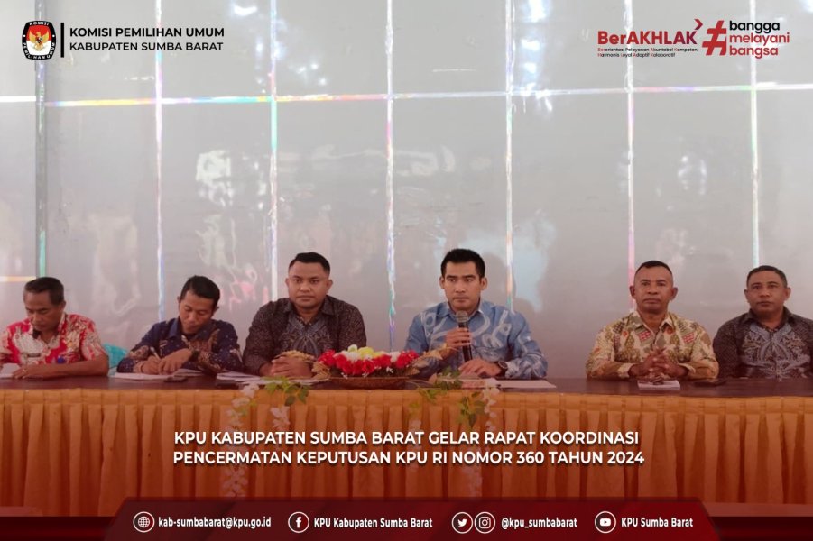 PRESS RELEASE Berdasarkan Peraturan Komisi Pemilihan Umum Republik Indonesia Nomor 7 Tahun 2024 tentang Penyusunan Daftar Pemilih Dalam Penyelenggaraan Pemilihan Gubernur dan Wakil Gubernur, Bupati dan Wakil Bupati, serta Walikota dan Wakil Walikota, KPU Kabupaten Sumba Barat melaksanakan Rapat Pleno Terbuka Rekapitulasi Daftar Pemilih Sementara Hasil Perbaikan Dan Penetapan Daftar Pemilih Tetap Dalam Pemilihan Gubernur Dan Wakil Gubernur, Bupati Dan Wakil Bupati Tahun 2024 dengan rincian sebagai berikut : Daftar Pemilih Tetap Tahun 2024 dengan jumlah sebanyak, dengan rincian Pemilih Laki-Laki berjumlah 48.974 (Empat Puluh Delapan Ribu Sembilan Ratus Tujuh Puluh Empat) Pemilih dan Pemilih Perempuan berjumlah 47.861 (Empat Puluh Tujuh Ribu Delapan Ratus E n a m P u l u h S a t u ) Pemilih, dengan total pemilih laki-laki dan perempuan sejumlah 96.835 (Sembilan Puluh Enam Ribu Delapan Ratus Tiga Puluh Lima) Pemilih yang tersebar di 6 (Enam) Kecamatan. Bagi masyarakat Sumba Barat yang akan mengecek apakah namanya sudah terdaftar pada daftar pemilih dapat mengecek dengan cara melihat pengumuman Daftar Pemilih Tetap (DPT) yang ditempel di papan pengumuman Kelurahan/Desa masingmasing dan/atau melalui cek secara online pada link : https://cekdptonline.kpu.go.id