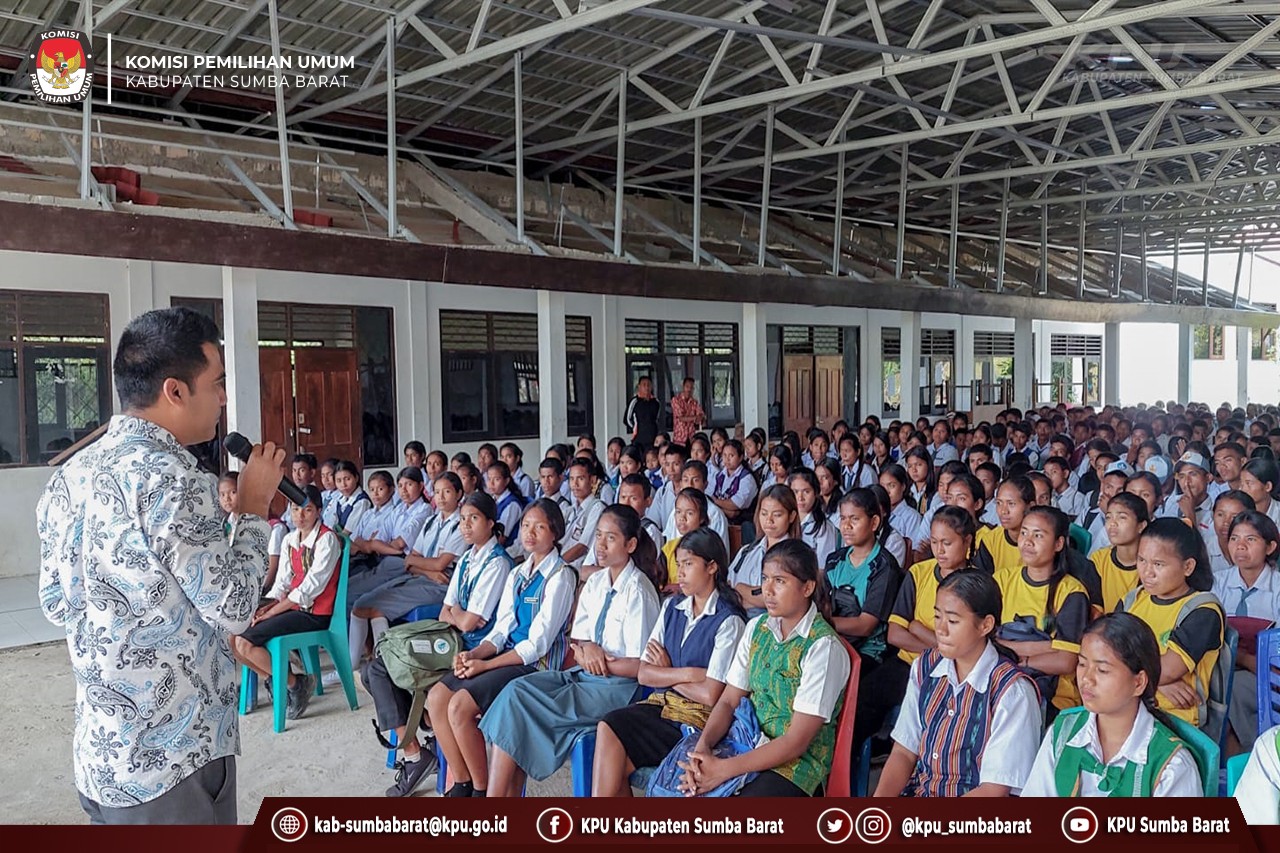 TemanPemilih – Waikabubak, 9 Agustus 2023 – Komisi Pemilihan Umum (KPU) Kabupaten Sumba Barat melaksanakan sosialisasi kepada pemilih pemula di empat sekolah di Kabupaten Sumba Barat, Sosialisasi ini bertujuan untuk meningkatkan partisipasi pemilih pemula dalam Pemilihan Umum Tahun 2024 dan Pemilihan Kepala Daerah Serentak Tahun 2024 selain itu sosialisasi ini juga bertujuan untuk memberikan pemahaman yang lebih baik tentang pentingnya pemilu dan peran lembaga penyelenggara KPU.